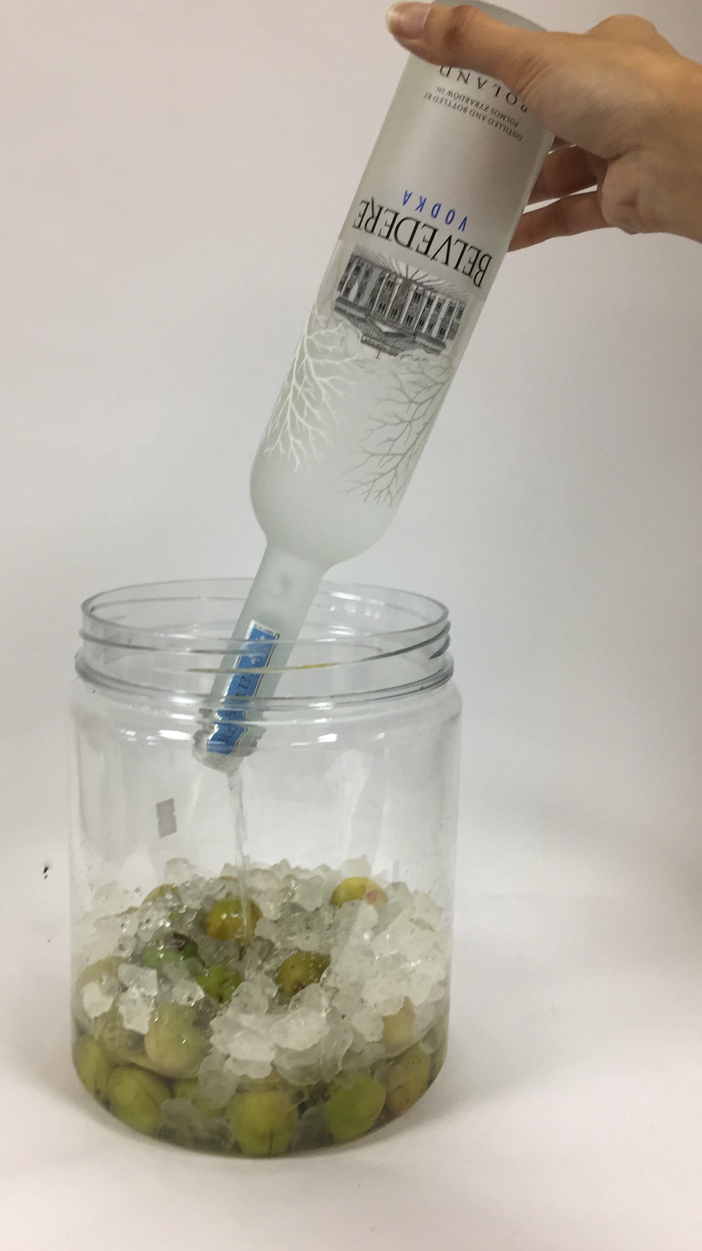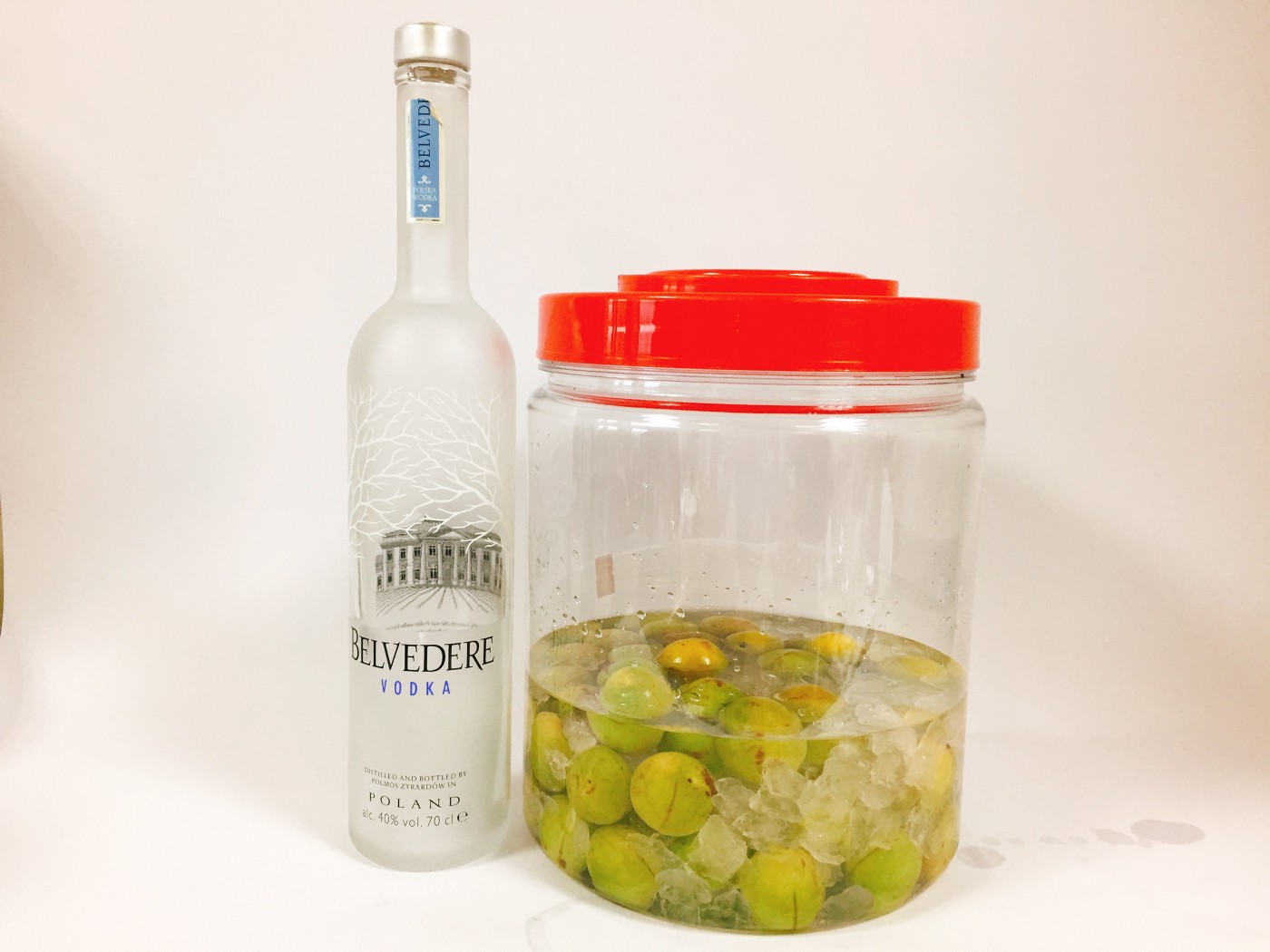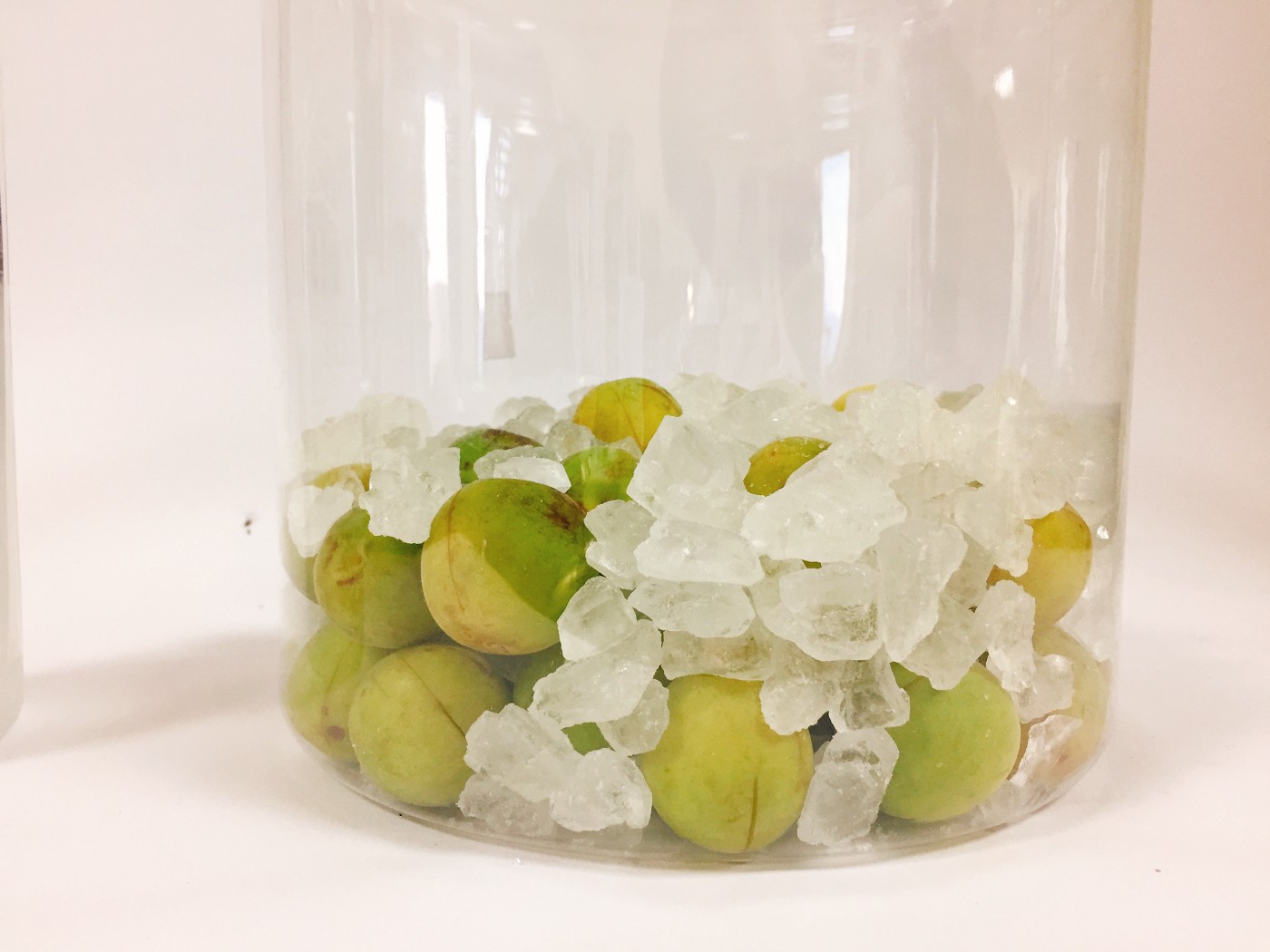 將青梅與冰糖置入桶中,並倒入酒即可