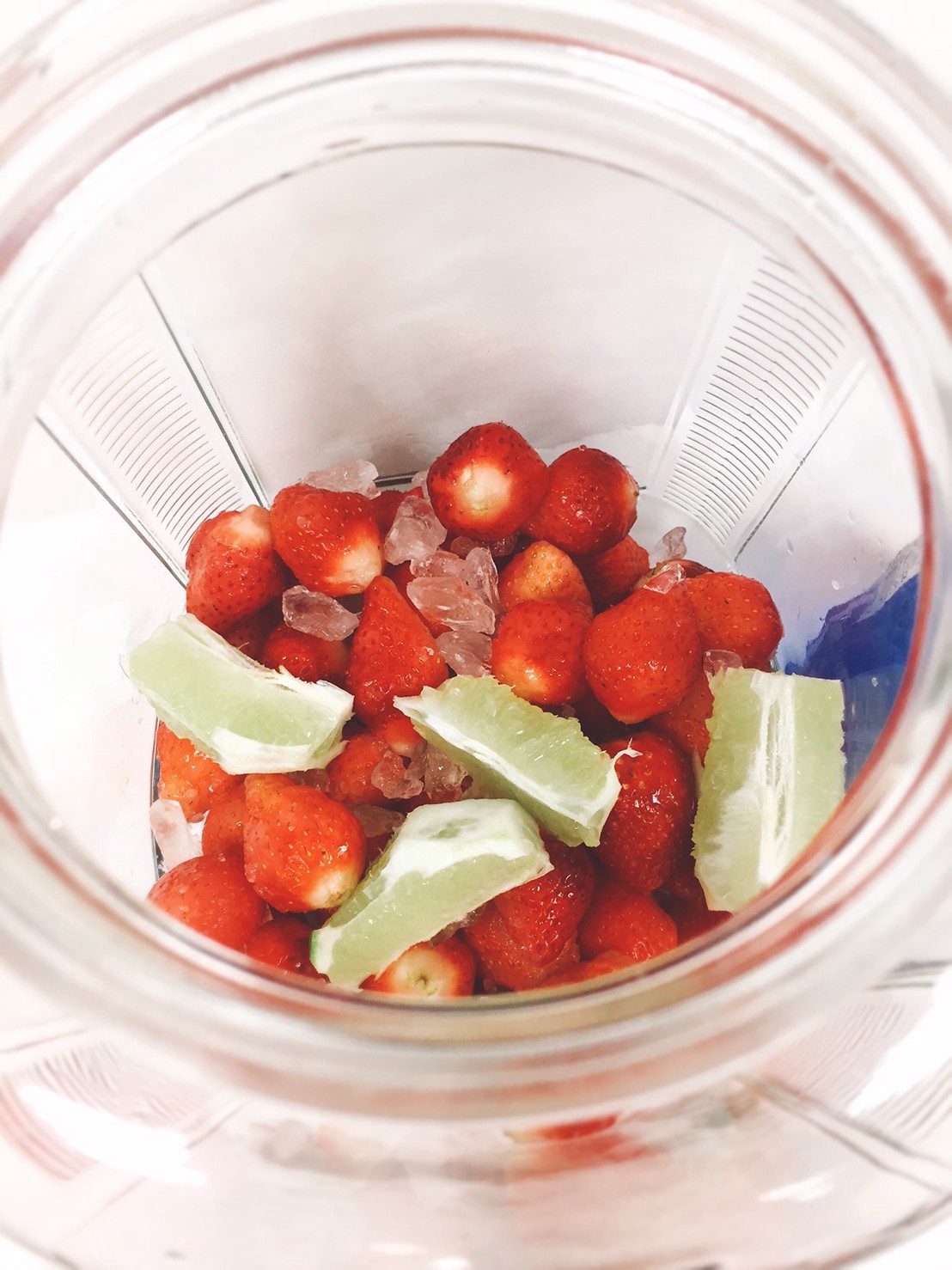 將檸檬切塊去皮,與冰糖、草莓一起放到瓶中