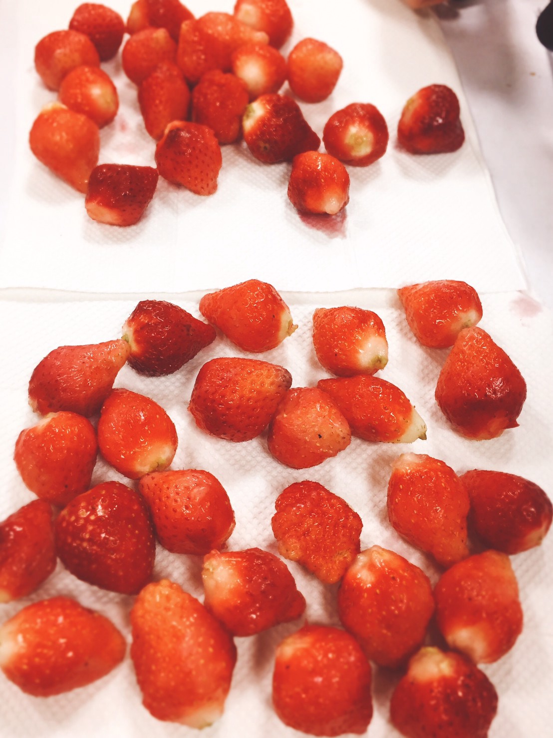 草莓真的很脆弱,下次要更小心的來進行前置作業,一不小心真的會有很多草莓不能用(不過這樣就可以拿來吃掉了~)